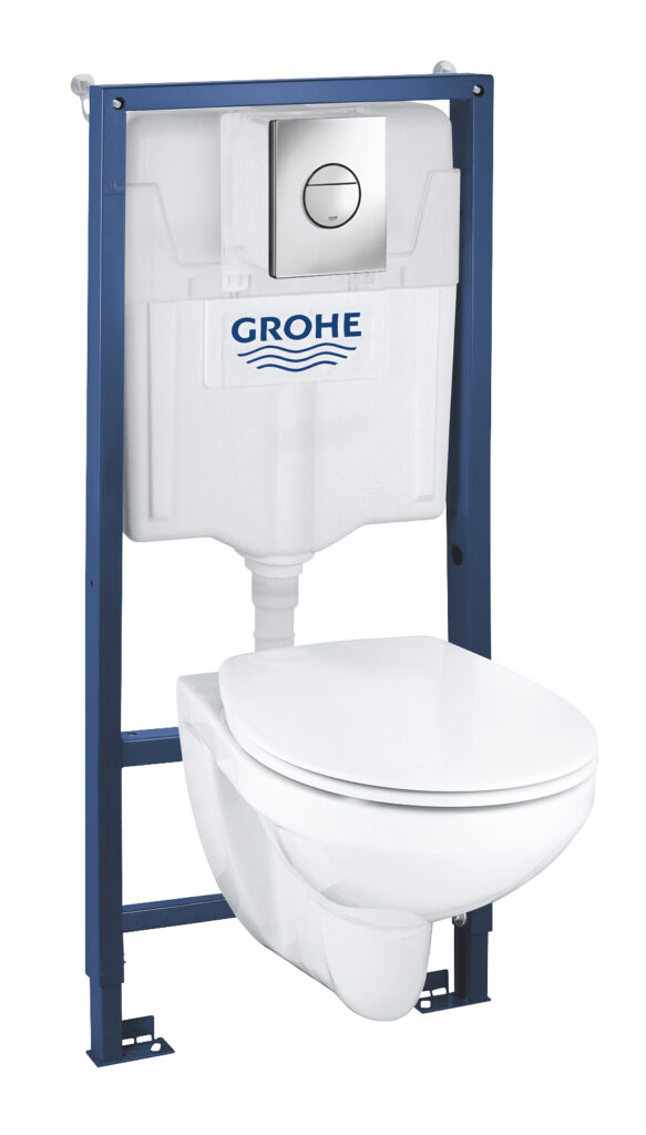GROHE Solido 4in1 komplekt – vett säästev ning vaikne paigaldussüsteem koos kvaliteetse Bau keraamikaga. Komplekti kuulub: raam Rapid SL (38536001); loputusnupp Sail, kroomitud, vertikaalne paigaldus; Bau keraamika seinapealne pott koos vaikselt sulguva prill-lauaga.