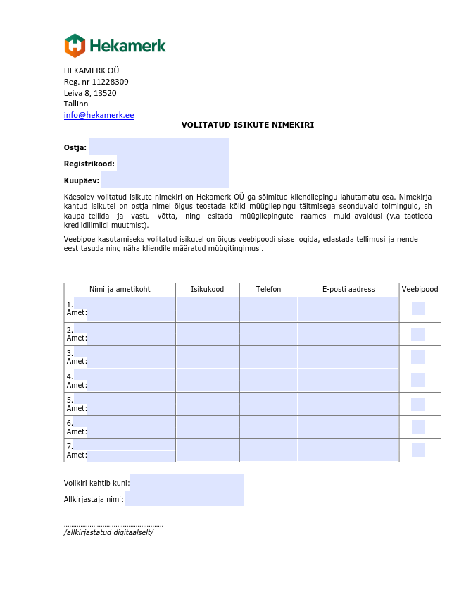 Sisselogimise õigus on lepinguliste klientide poolt volitatud isikutel.